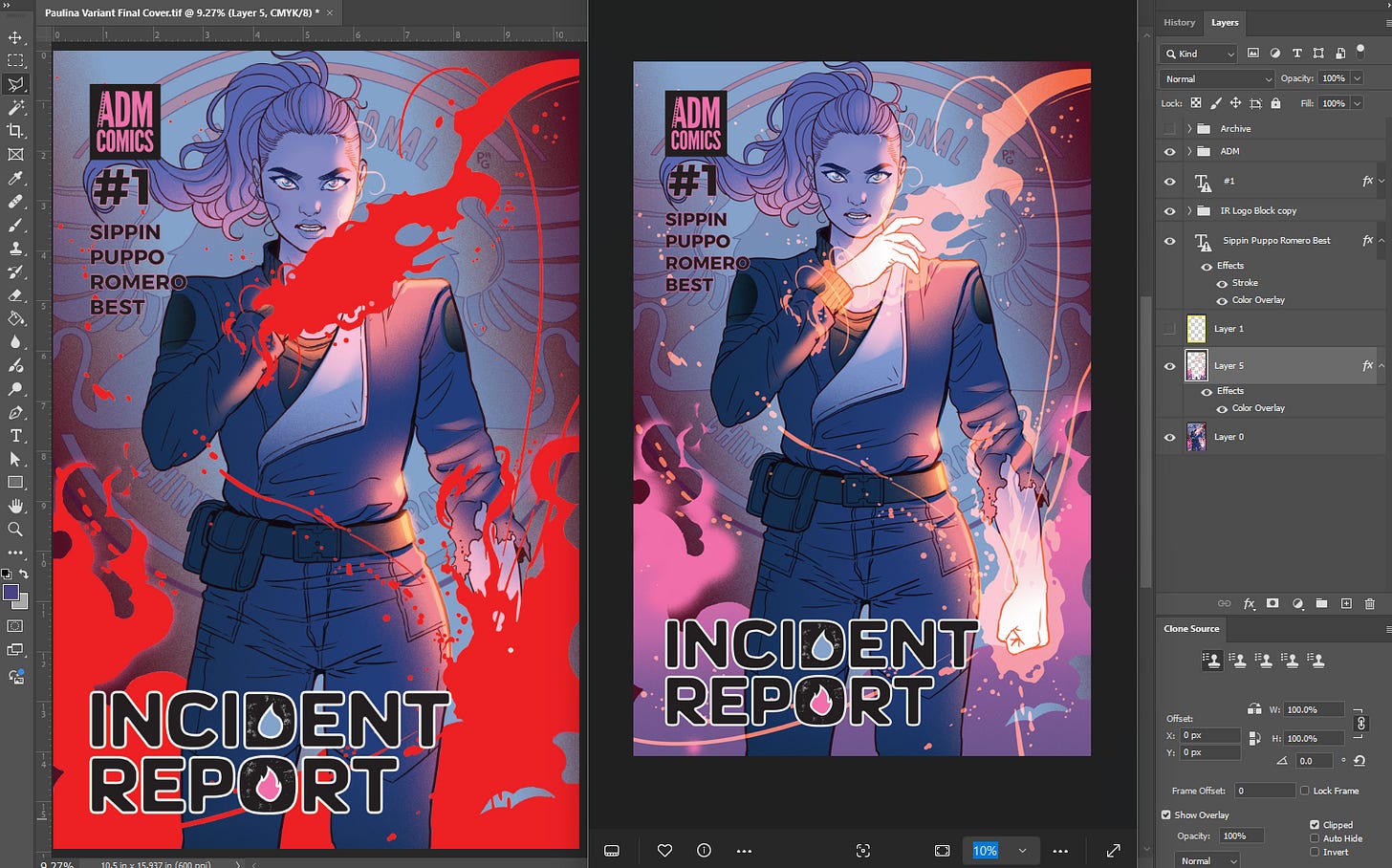 Storytime! At one of my old jobs, I was responsible for designing product packaging. It taught me several useful skills for making comics. (In fact, every job I’ve ever worked has taught me a useful skill for making comics). In this case, it was how to prepare files for a print, including files that had special effects on them like foil or Spot UV.